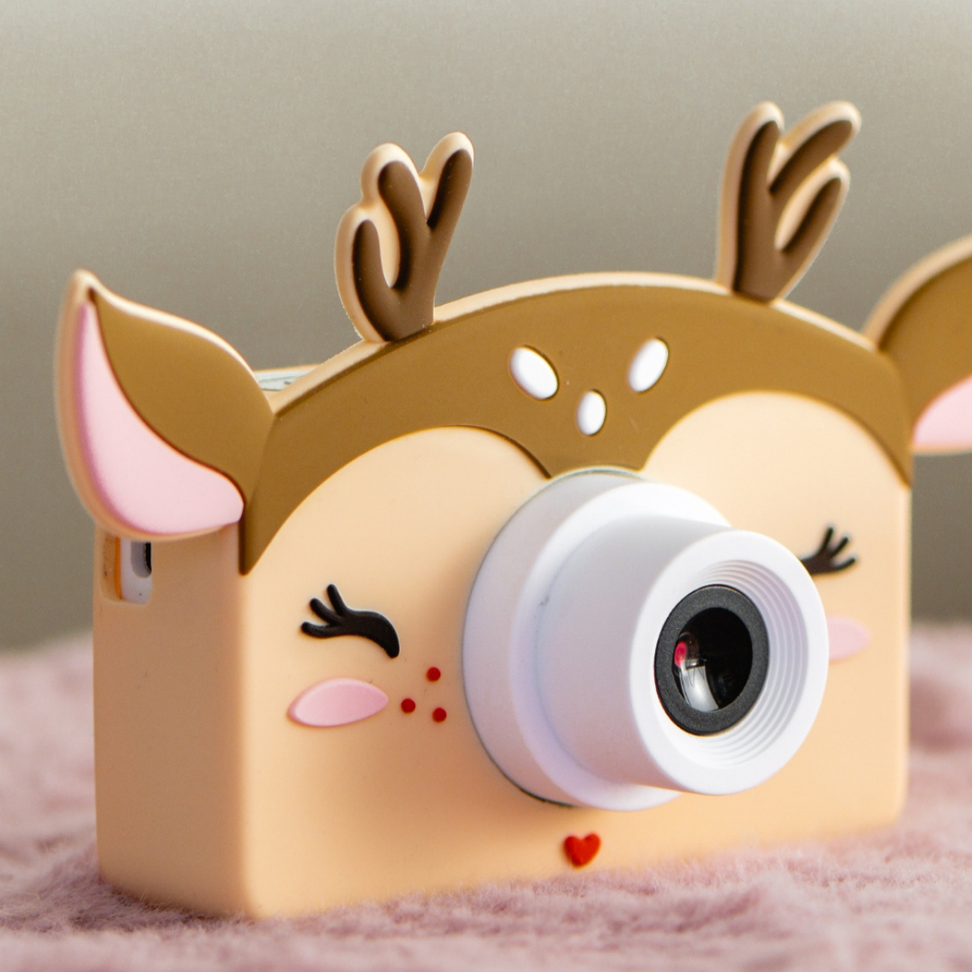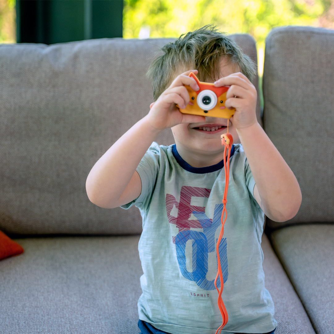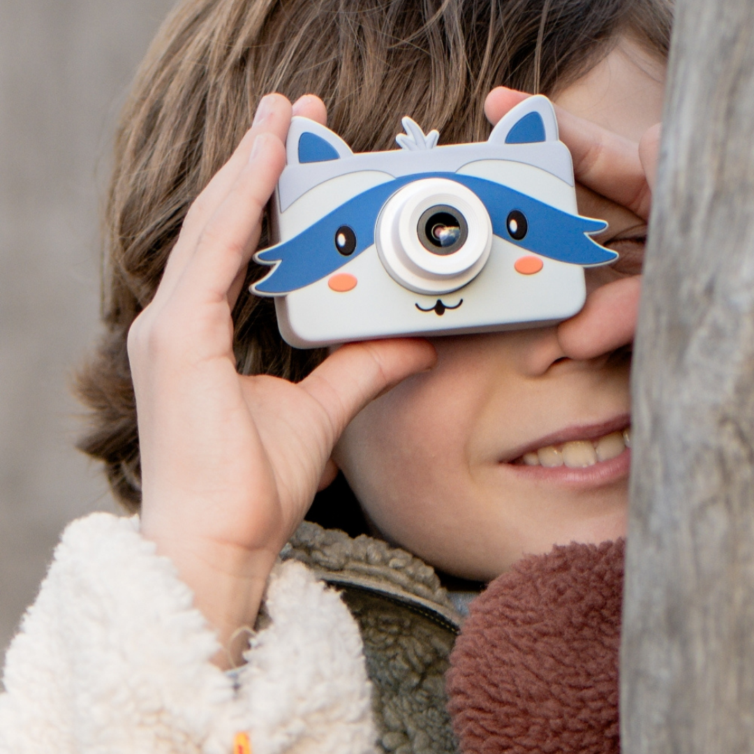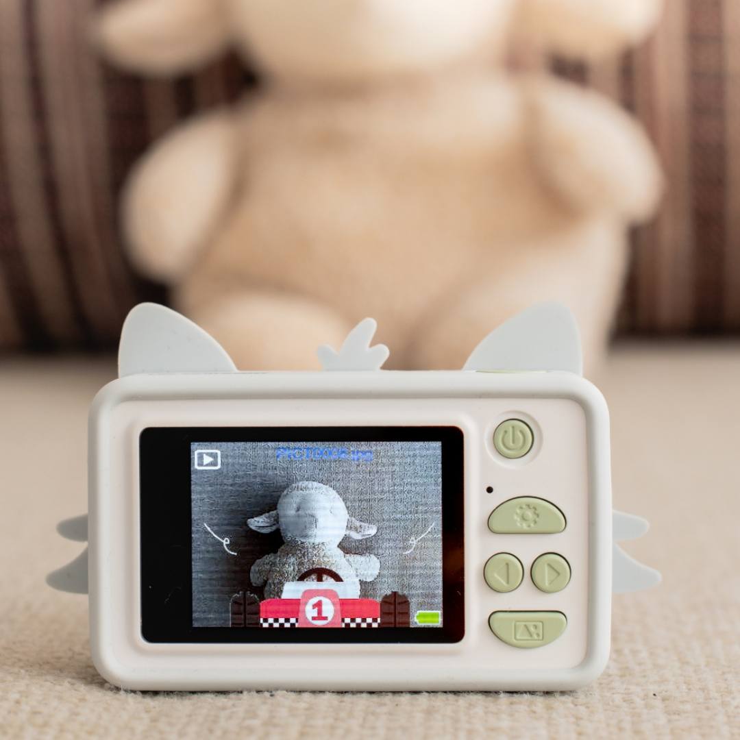 Aparat posiada funkcję filtrów, które pozwalają dodawać zabawne naklejki i ramki do zdjęć, np. w kostiumie króliczka, astronauty lub z kocimi uszami! Co więcej, uroczy kształt pokrowca sprawia, że dzieci go pokochają.