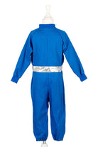 Kostium kombinezon astronauty Andre holenderskiej marki Souza! to przepiękne przebranie dla dziecka. Ma intensywnie niebieski kolor, zapięcie na suwak i mankiety przy rękawach oraz ściągacze przy nogawkach. Jest wygodny i łatwy do samodzielnego zakładania. Zachwyca dbałością o detale. Ma srebrny pas i lampasy, białe napisy i amerykańskie naszywki. Jest miękki i komfortowy. Idealny na bal przebierańców, przedstawienie czy Halloween. Sprawdzi się także jako prezent.
