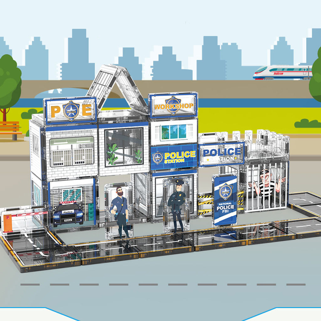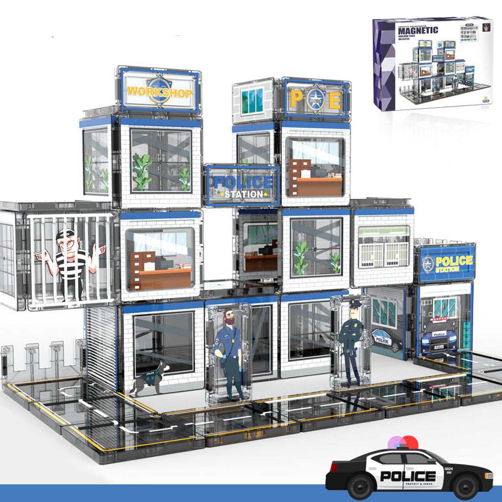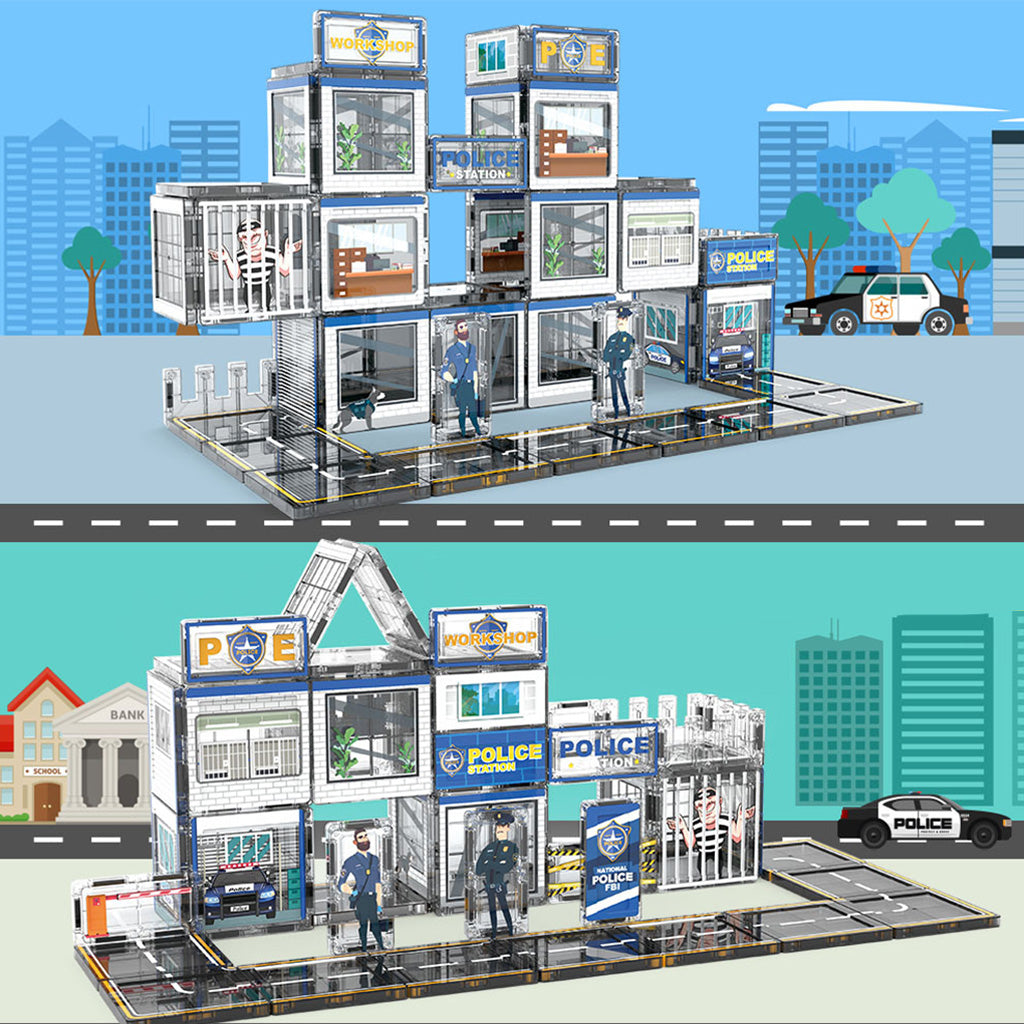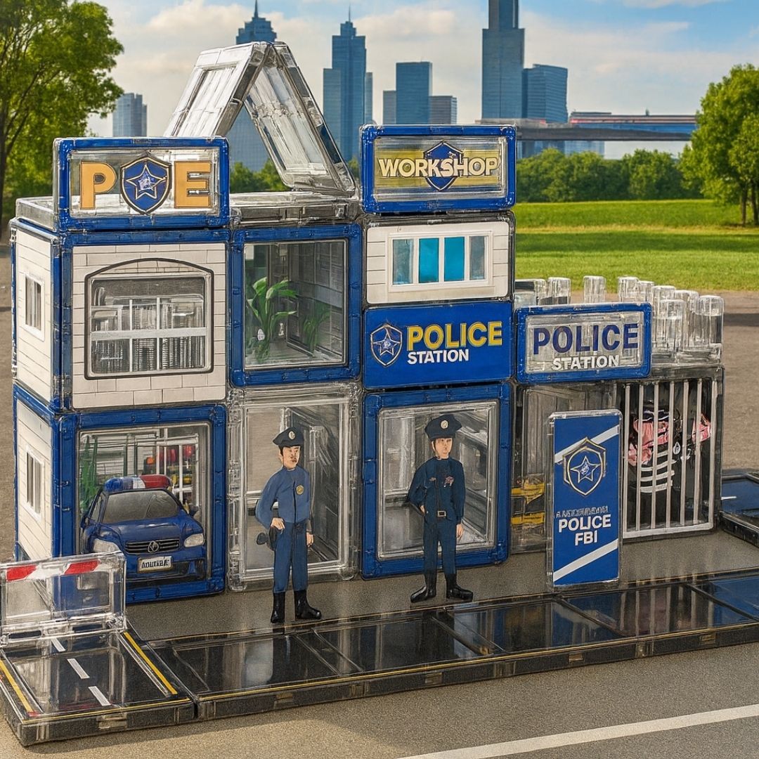 Przygotuj się na ekscytującą akcję i pilnowanie porządku! Ten zestaw magnetycznych klocków to kreatywna zabawka, która pozwala na wzniesienie realistycznego i funkcjonalnego Komisariatu Policji oraz Policyjnego Warsztatu.