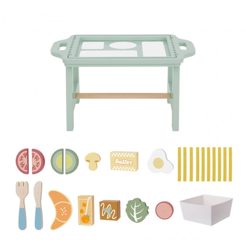 Zestaw Śniadaniowy Woopie Green to idealna zabawka dla małych kucharzy, którzy uwielbiają przygotowywać i serwować pyszne posiłki. Drewniane elementy, piękne pastelowe kolory i stylowa taca sprawiają, że każda zabawa w gotowanie staje się wyjątkowa, realistyczna i inspirująca.