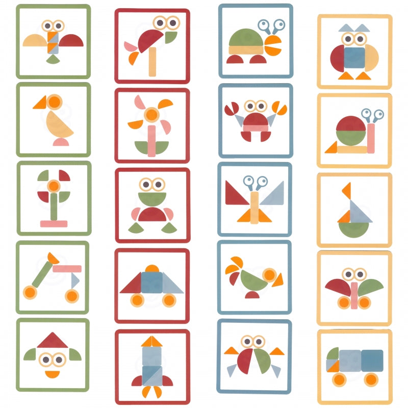 10 dwustronnych kart z 20 wzorami (3 poziomy trudności)