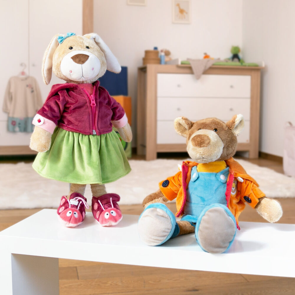 Każda lalka wykonana jest z miękkich, bezpiecznych materiałów o różnorodnych fakturach, które pobudzają zmysły i zachęcają do eksplorowania. Ich przyjazne buźki i dopracowane detale sprawiają, że stają się ulubionymi towarzyszami codziennych przygód – w domu i w podróży.