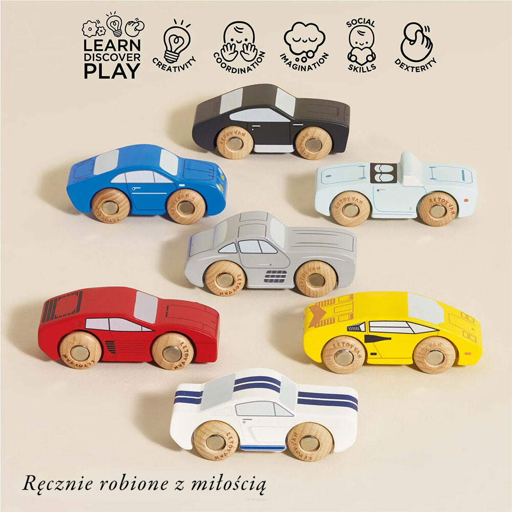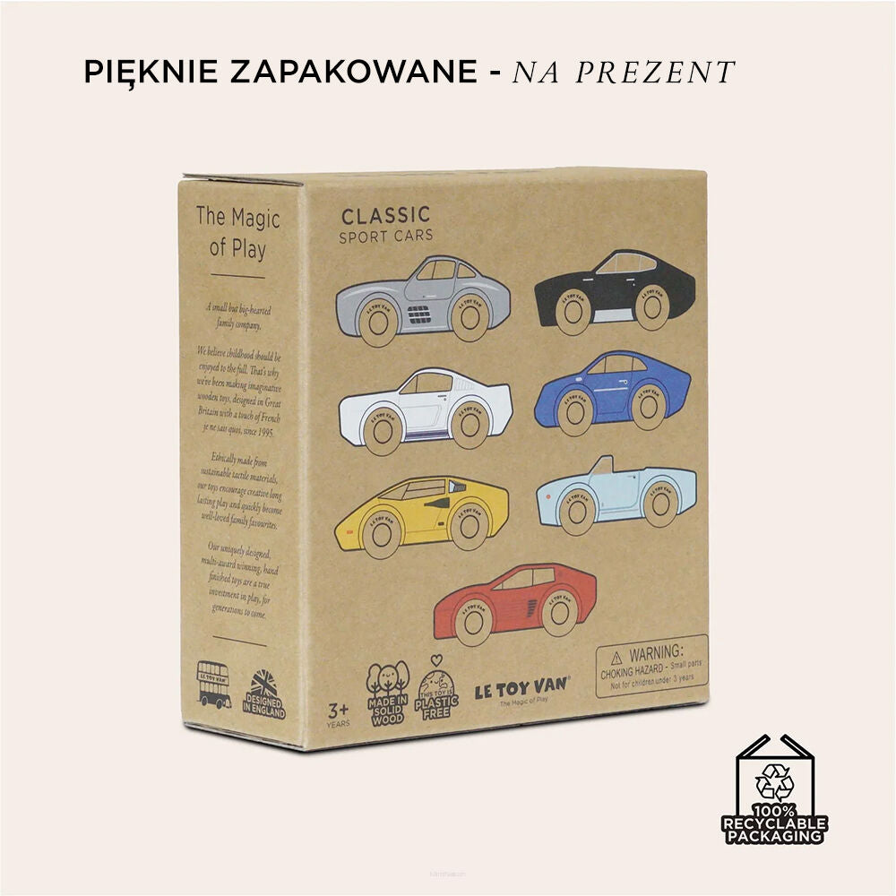 Rozbudź wyobraźnię i pasję do motoryzacji dzięki uroczej kolekcji 7 klasycznych drewnianych autek wyścigowych Le Toy Van! Ten wyjątkowy zestaw miniaturowych pojazdów został zaprojektowany z ogromną dbałością o detale – każde autko zachwyca finezyjną grafiką, ponadczasowym stylem i solidnym wykonaniem. To niezastąpiona zabawka dla małych rajdowców, którzy marzą o tworzeniu własnych torów, gonitw i pełnych emocji motoryzacyjnych przygód.