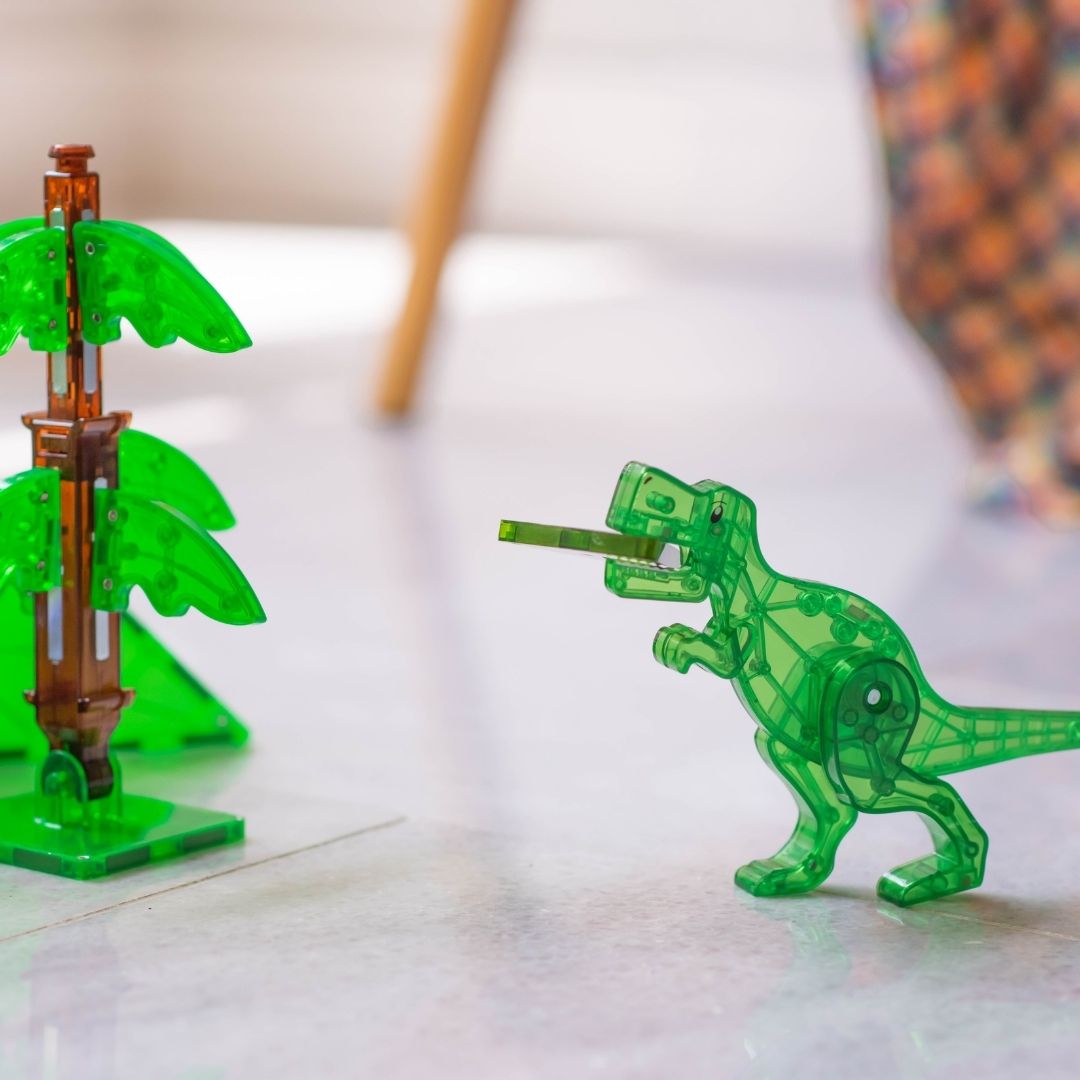 - Nowe magnetyczne drzewa – po raz pierwszy w zestawach MAGNA-TILES®! Umożliwiają tworzenie trójwymiarowych scenerii i dżungli.