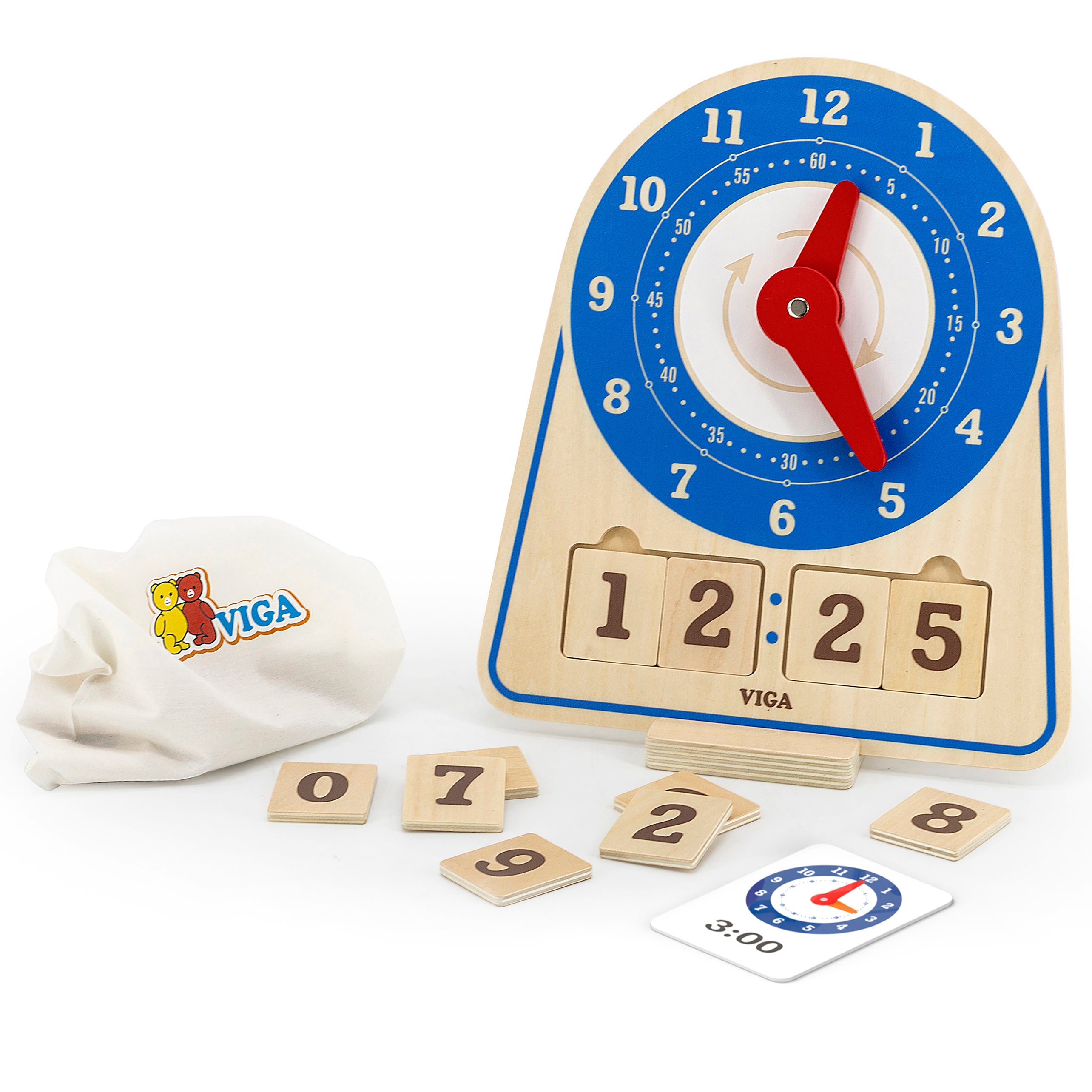 Drewniany zegar to fantastyczna zabawka edukacyjna, która pozwala dzieciom w przyjemny sposób nauczyć się, jak odczytywać czas zarówno na zegarze analogowym, jak i cyfrowym.