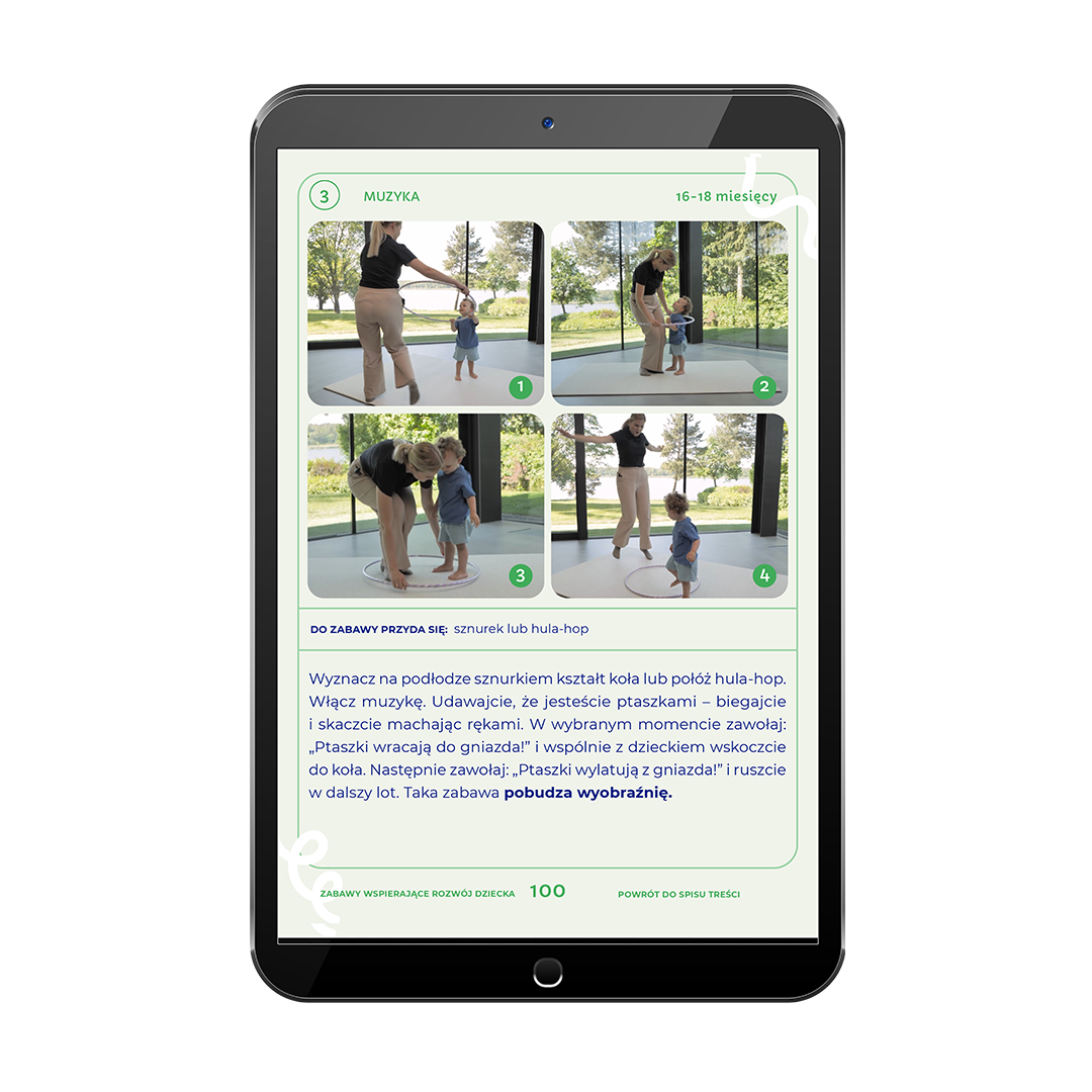 - Zdjęcia demonstrujące prawidłowy sposób wykonania zabawy, prezentowany przez specjalistę. Wiesz dokładnie, co robić i dlaczego to ważne!