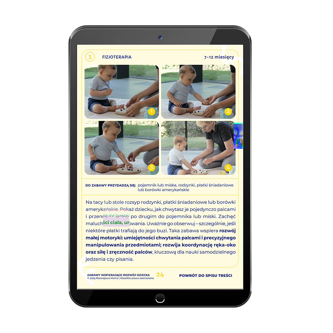 - Zdjęcia demonstrujące prawidłowy sposób wykonania zabawy, prezentowany przez specjalistę. Wiesz dokładnie, co robić i dlaczego to ważne!